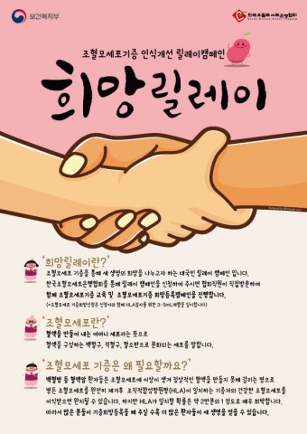 백혈병 환자들은 완치를 위해 기증자의 건강한 조혈모세포가 필요하나 아직 일반인 및 기증희망자들은 조혈모세포기증에 대한 정확한 정보부족 등의 이유로 기증을 망설이고 있어 정확한 정보제공 등 인식개선이 무엇보다 중요하다.