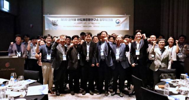 제1차 권역별 반도체공동연구소 실무워크숍 참석자들이 기념 촬영을 하고 있다
