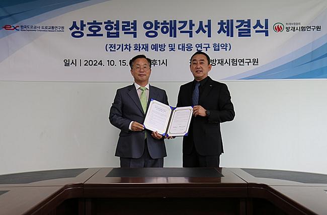 한국도로공사(사장 함진규)는 15일 방재시험연구원(원장 이승우)과 방재시험연구원에서 전기차 화재예방 및 대응을 위한 업무협약을 체결했다고 밝혔다.