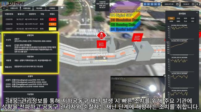 정부는 다부처 협력 연구개발로 지하공동구의 재난 예측과 신속한 대응을 위한 `디지털트윈 기반 재난관리 플랫폼`을 구축하고, 이를 13일부터 광주에서 열리는 `2024 대한민국 정부박람회`에서 공개한다고 밝혔다.